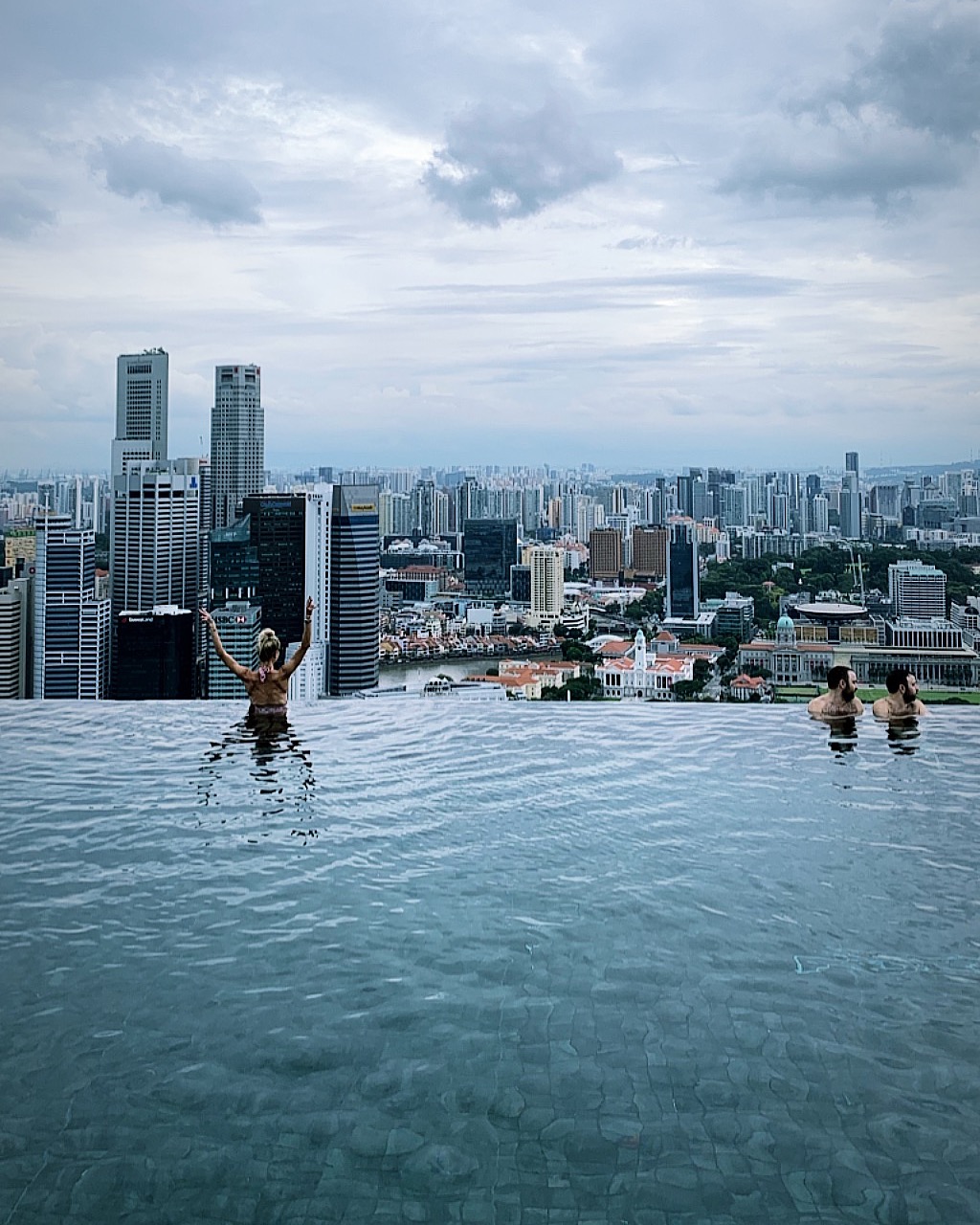 Toissa syksynä vietin viikon Singaporessa ja ihastuin kaupunkiin täysin. Samoja kulmia ollaan koluttu ja tutunnäköisiä maisemia. Marina Bay Sandsin näköalabaarissa kävimme ja sieltä ei päässyt uima-altaalle edes kurkkimaan ellei ollut hotellin avainta. Vaikka se näyttää olevan täynnä turreja, haluaisin siitä huolimatta viettää siellä joskus yhden yön. Näköala altaalta on vaan niin upea.