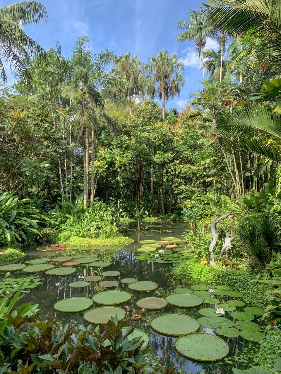 Botanic Gardensin portit aukeavat jo viideltä aamulla, ja paikka onkin aamuisin paikallisten taiji -harrastajien, joogaajien ja lenkkeilijöiden suosiossa. Viikonloppuisin monet singaporelaiset käyvät täällä piknikillä. Puistossa voisi vaellella loputtomiin, ja se sijaitsee kätevästi viiden minuutin kävelymatkan päässä Orchard Roadin ostoskadun pohjoispäästä. Jos et pääse aistimaan puutarhan kauneutta aamulla, paras aika saapua paikalle on iltapäivällä tai alkuillasta, vaikkapa viilentymään lasilliselle jossakin puutarhan monista ihanista ravintoloista.